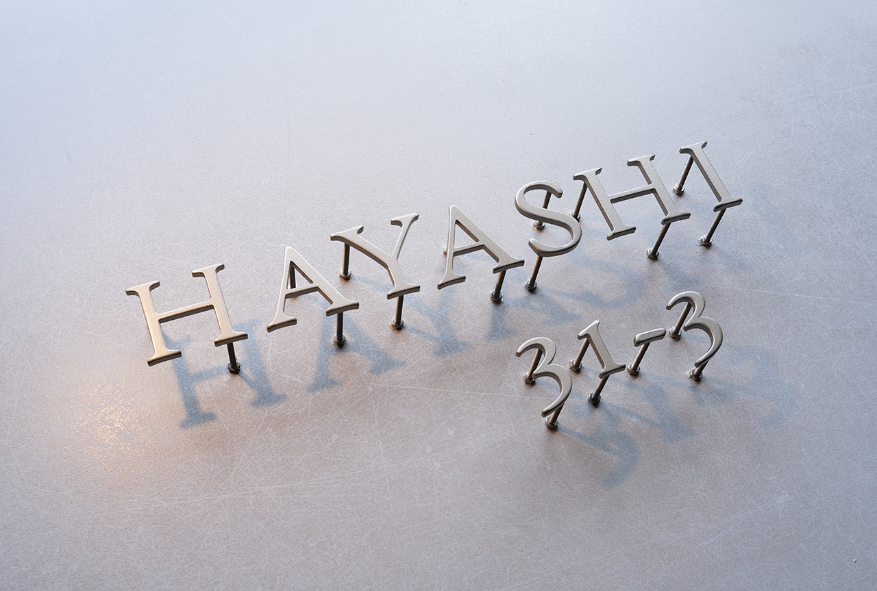 玄関の写真を拝見してご提案しました 表札幅300mm ハウスナンバー 95mm