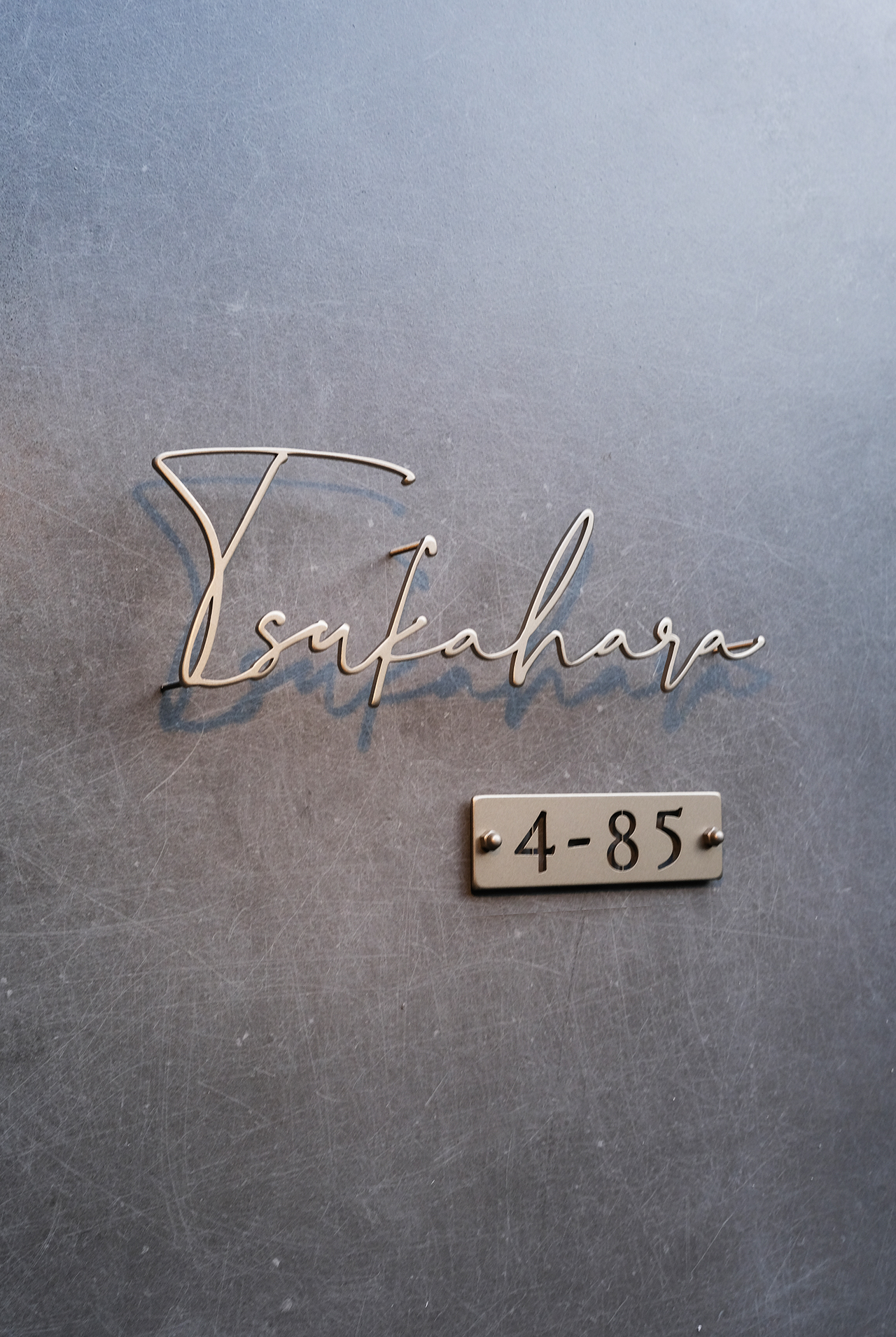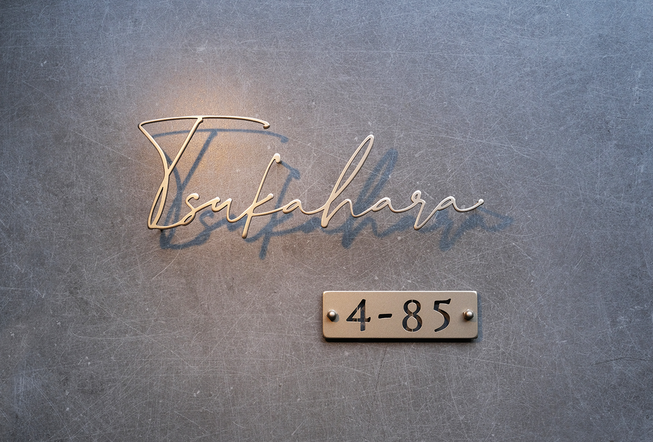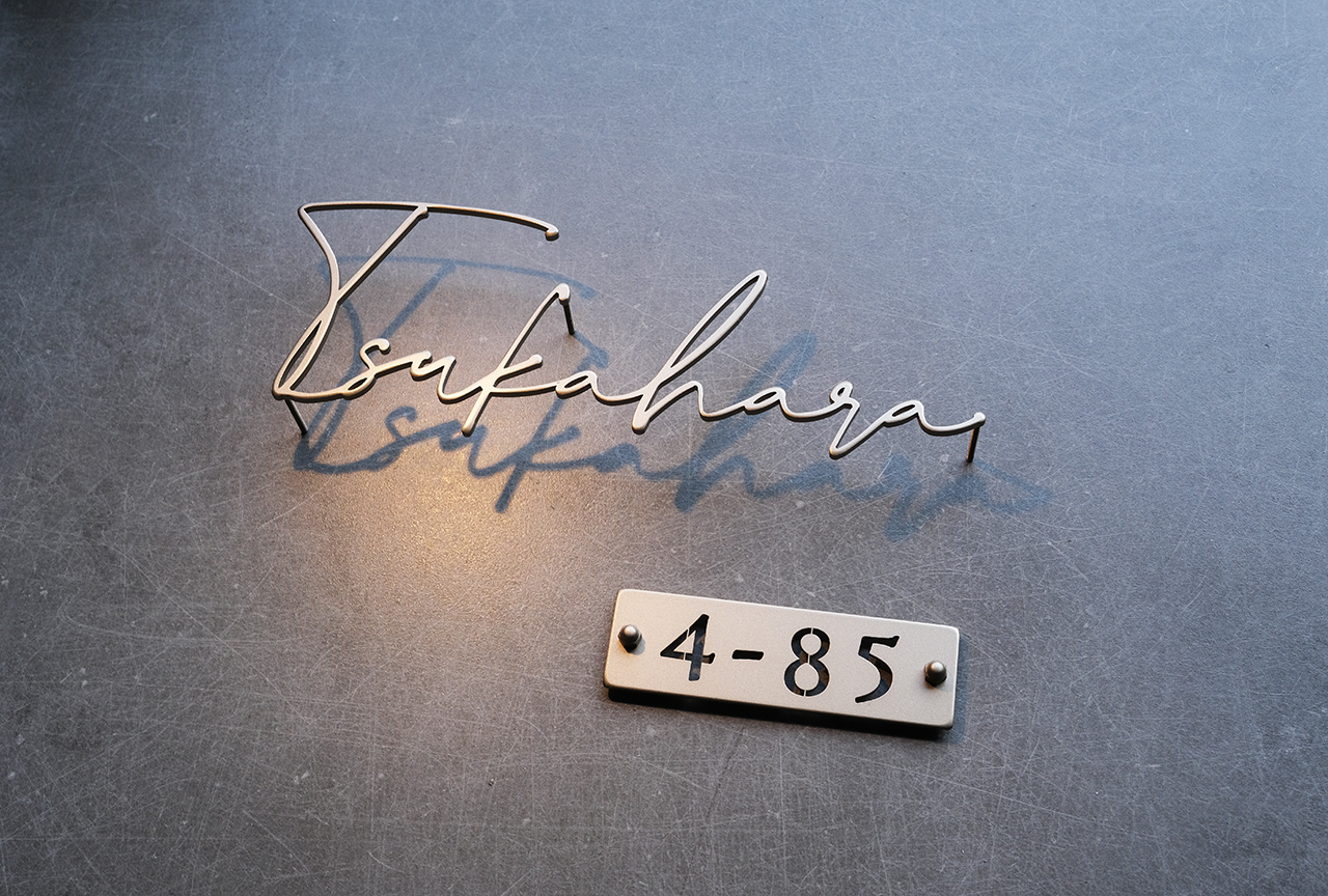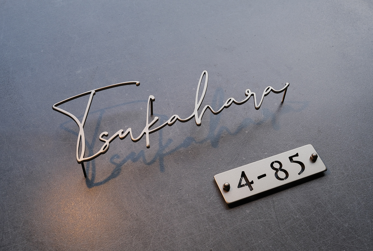 取付場所の写真を拝見してご提案しました 表札幅285mm 番地プレート 130x40mm