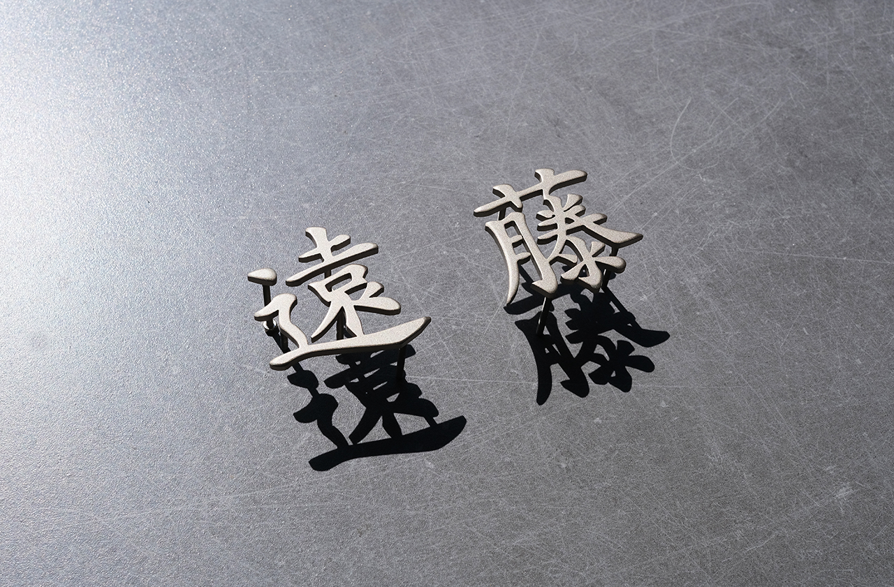 マットゴールド塗装の独立文字のステンレス切り文字表札