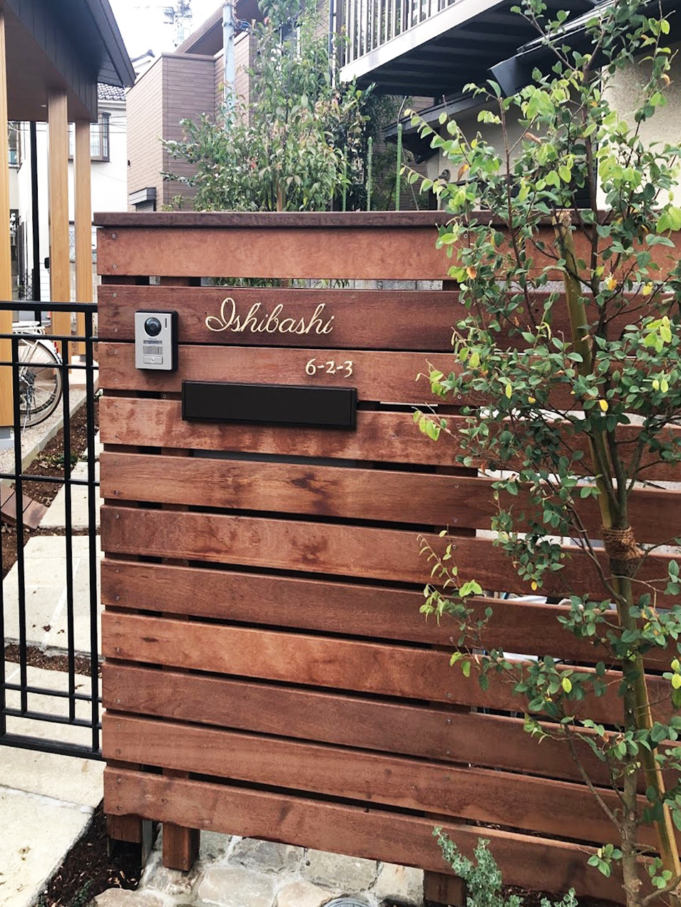 門柱の写真を拝見してご提案しました 表札幅 300mm  ハウスナンバー 105mm