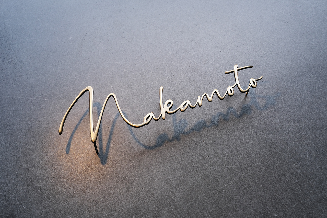 いぶし仕上げの真鍮切り文字表札
