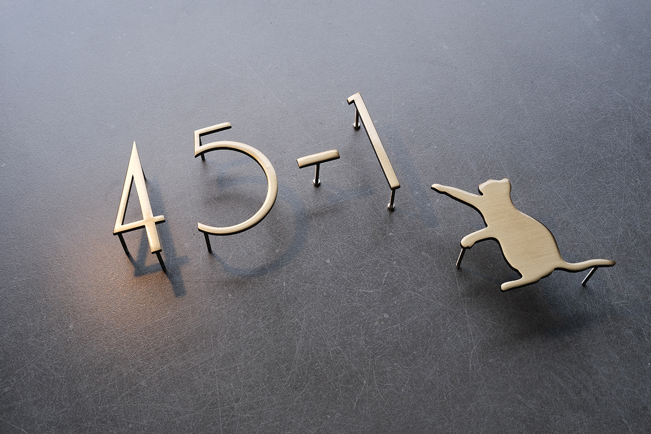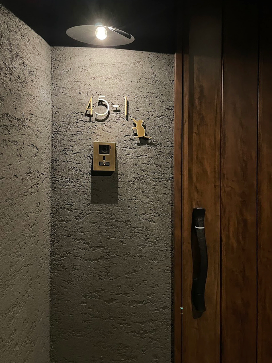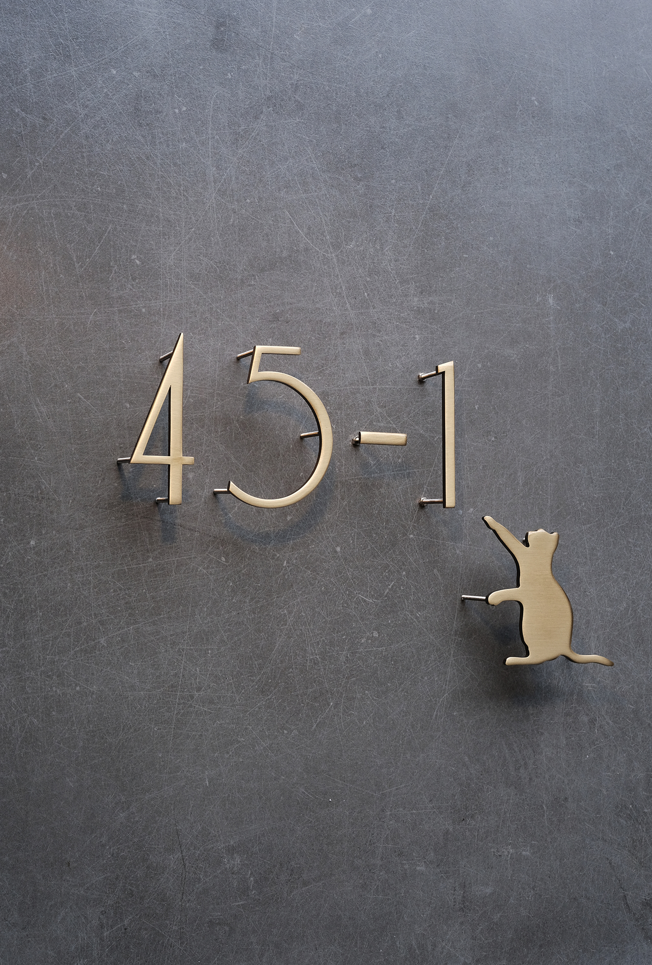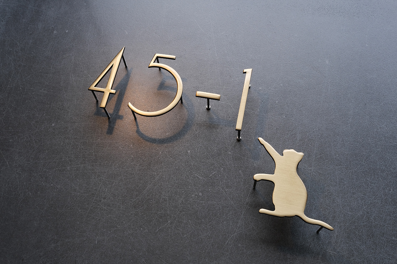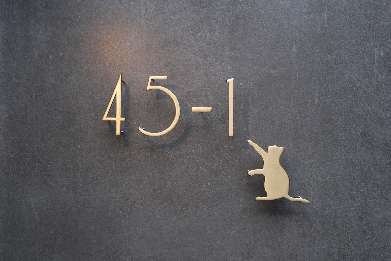 ハウスナンバーと猫のシルエットがマイホームのシンボルです