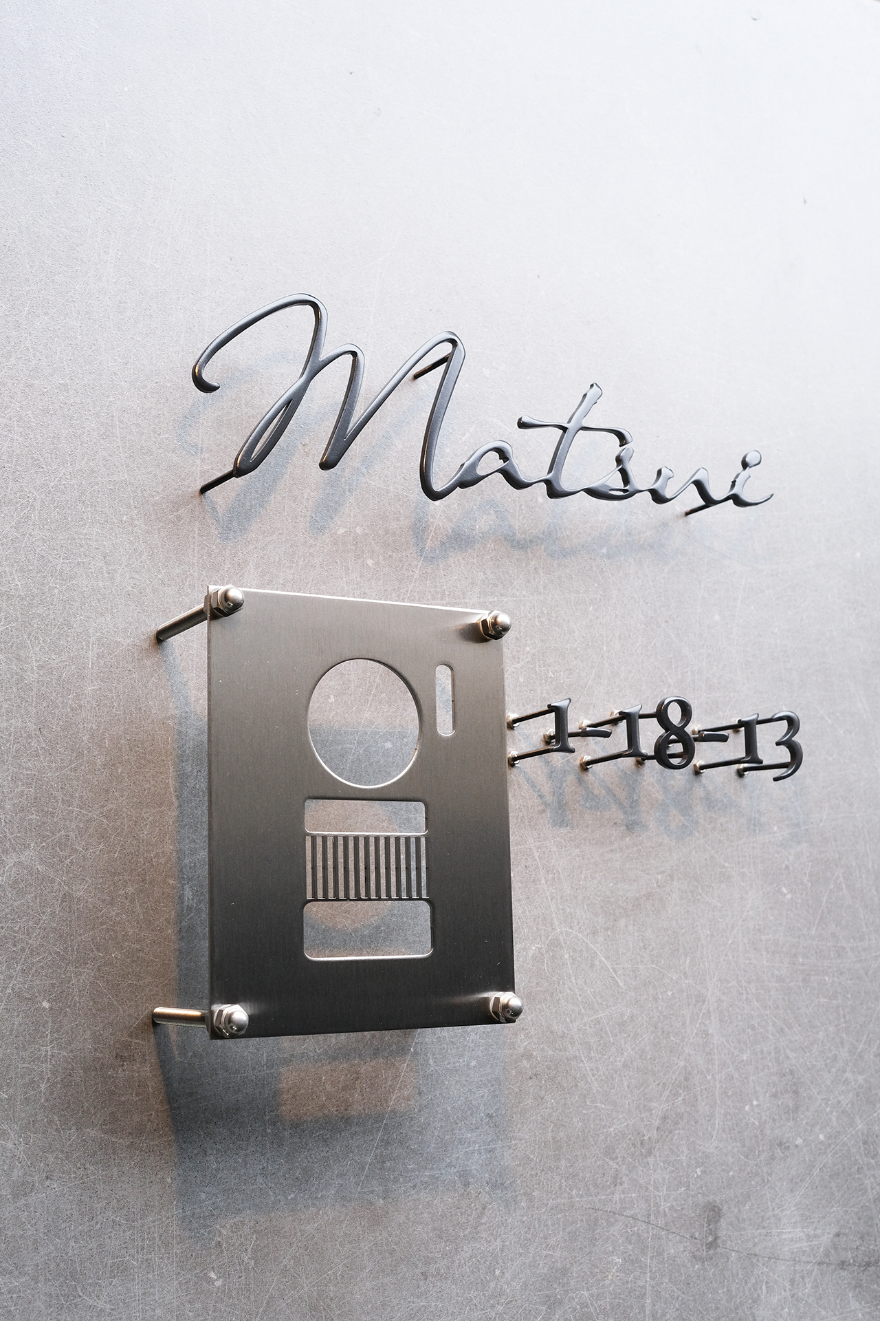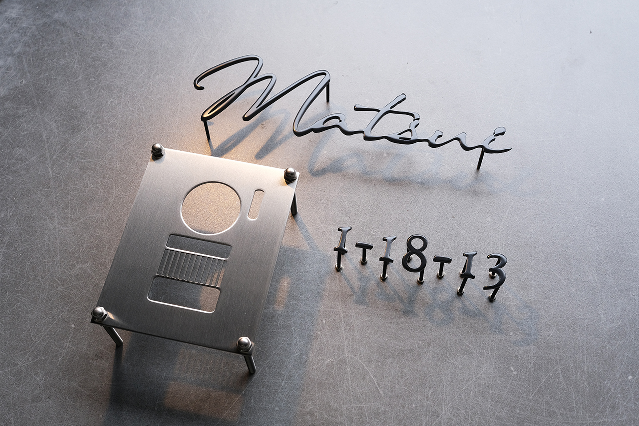 チャコールグレー仕上げのステンレス切り文字表札ハウスナンバー