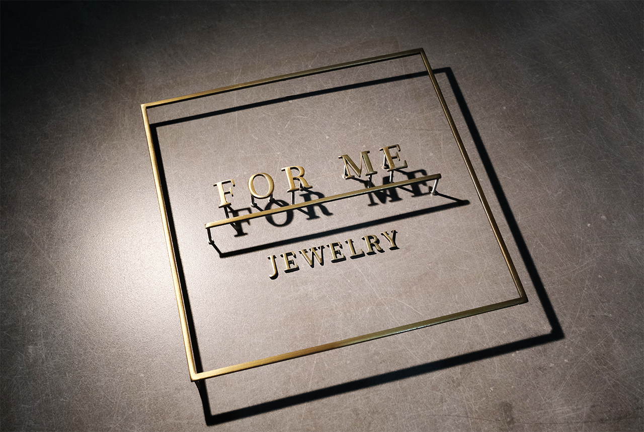 いぶし仕上げの真鍮切り文字の店舗サイン