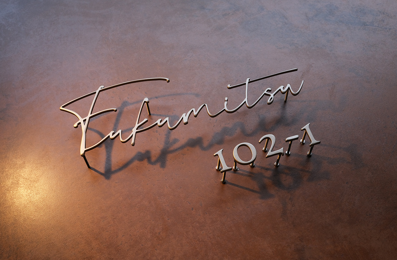 マットゴールドのステンレス切り文字表札とハウスナンバー