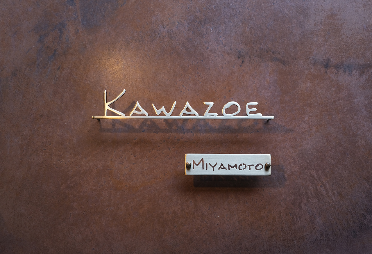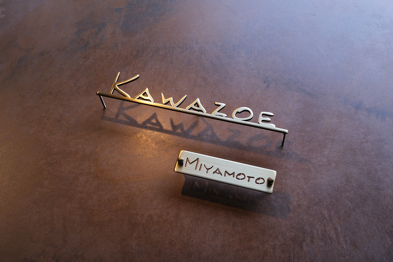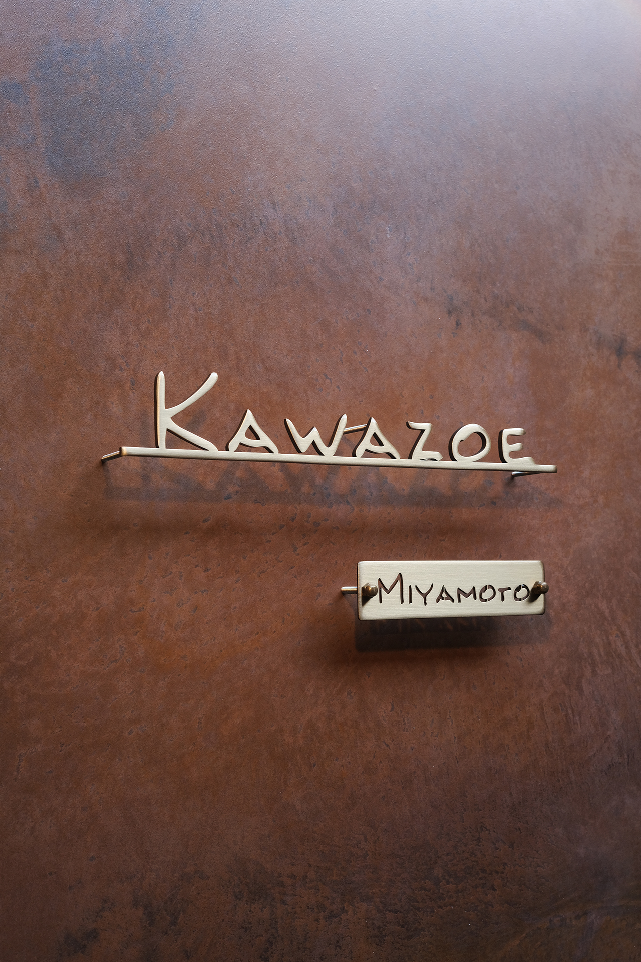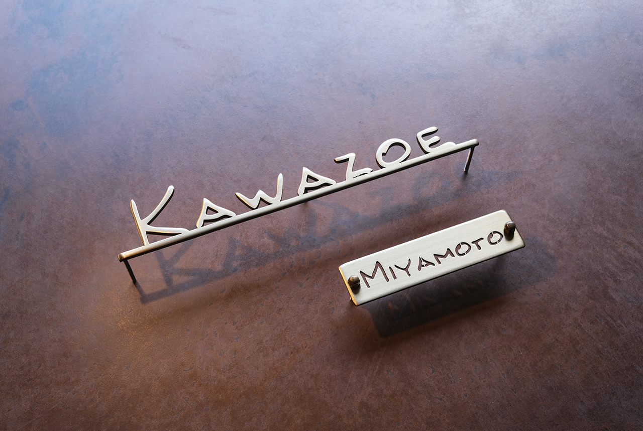 いぶし仕上げの真鍮切り文字表札とネームプレート