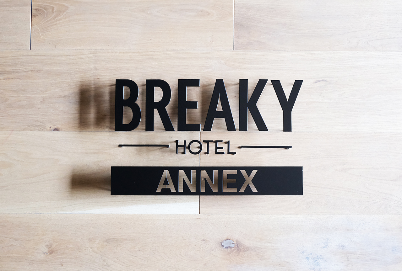 マットブラック仕上げのホテルの看板 沖縄『BREAKY HOTEL 』