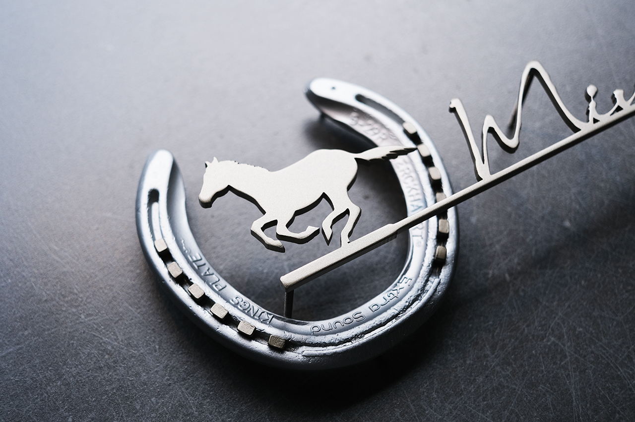 蹄鉄は釘も本物(マットゴールド塗装)を使い、マットシルバーの焼付塗装