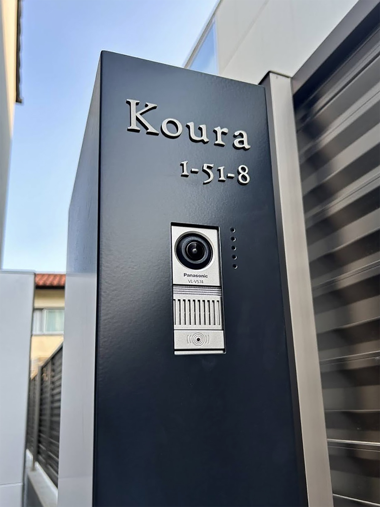機能門柱用のステンレス切り文字表札とハウスナンバー