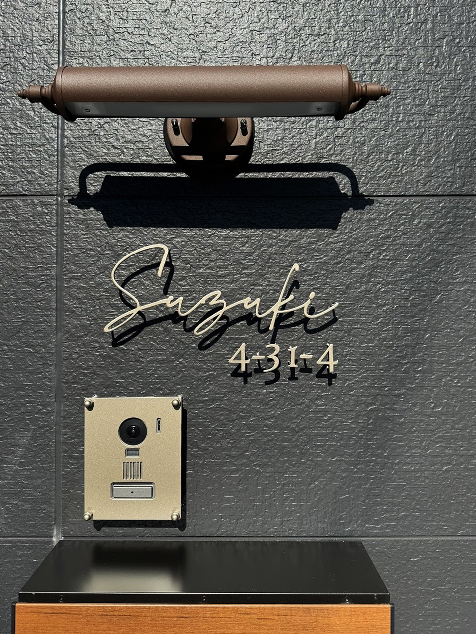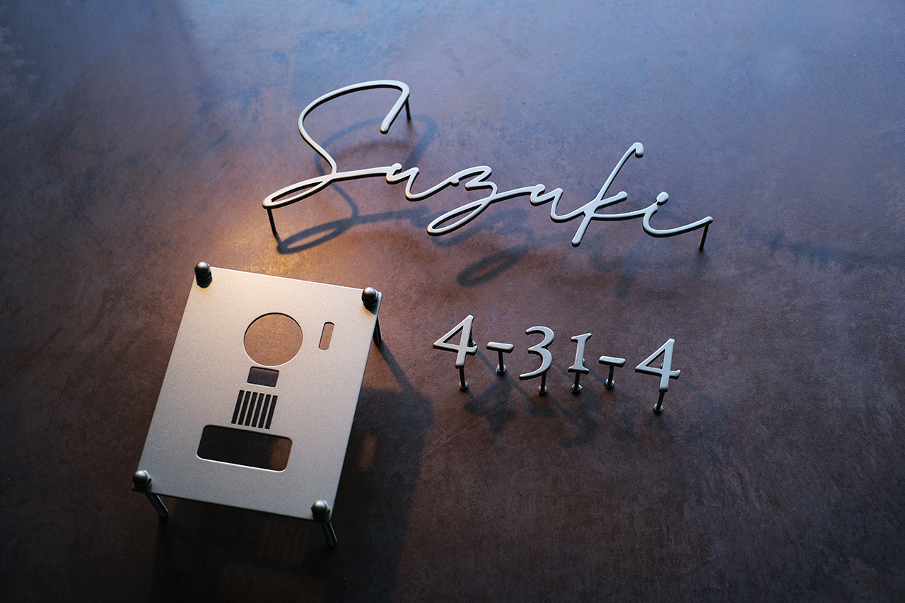 取付場所の写真を拝見してご提案しました 表札幅300mm ハウスナンバー 175mm