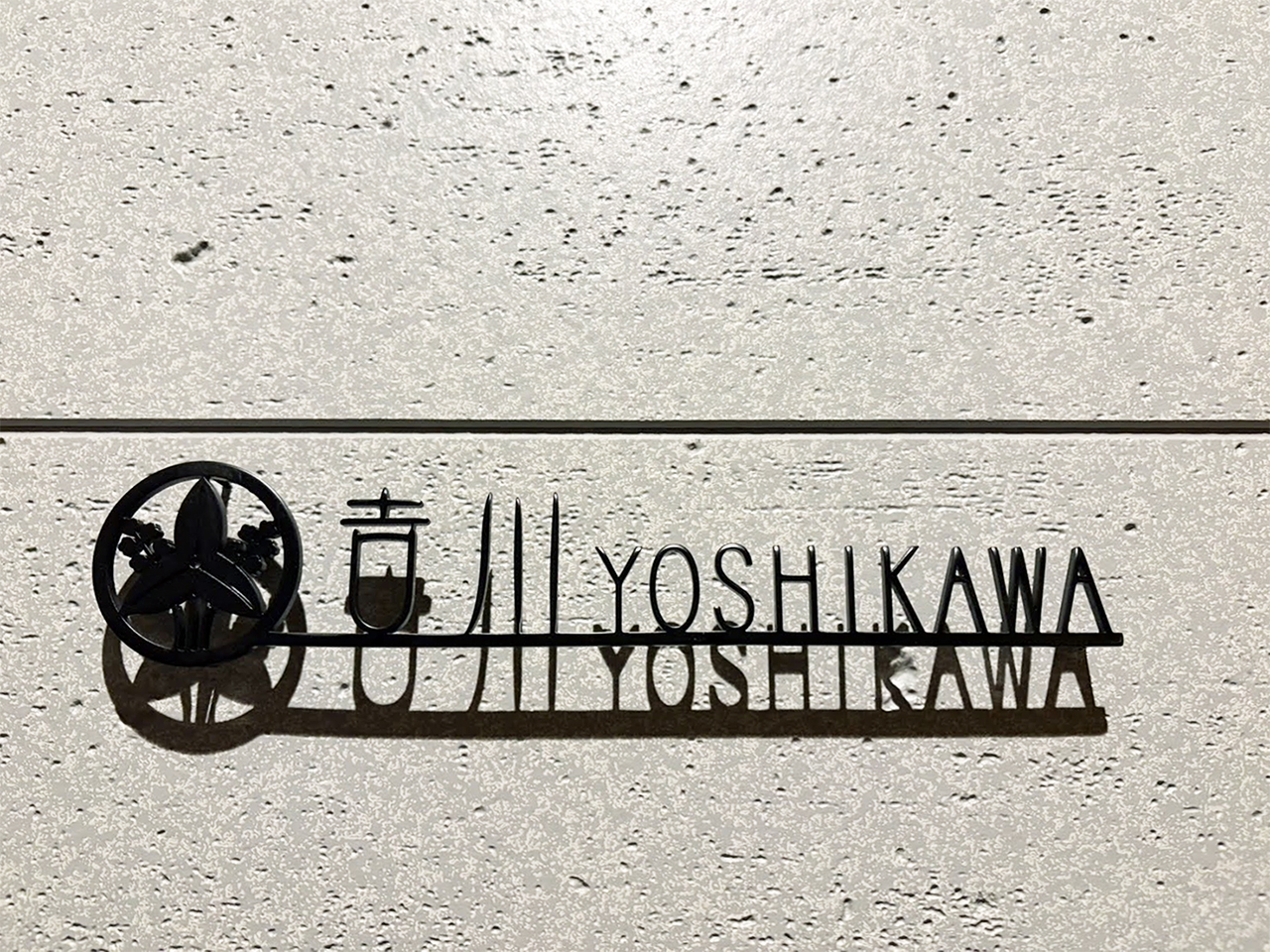 家紋『丸に立ち沢瀉(おもだか)』をデザインしたステンレス切り文字表札
