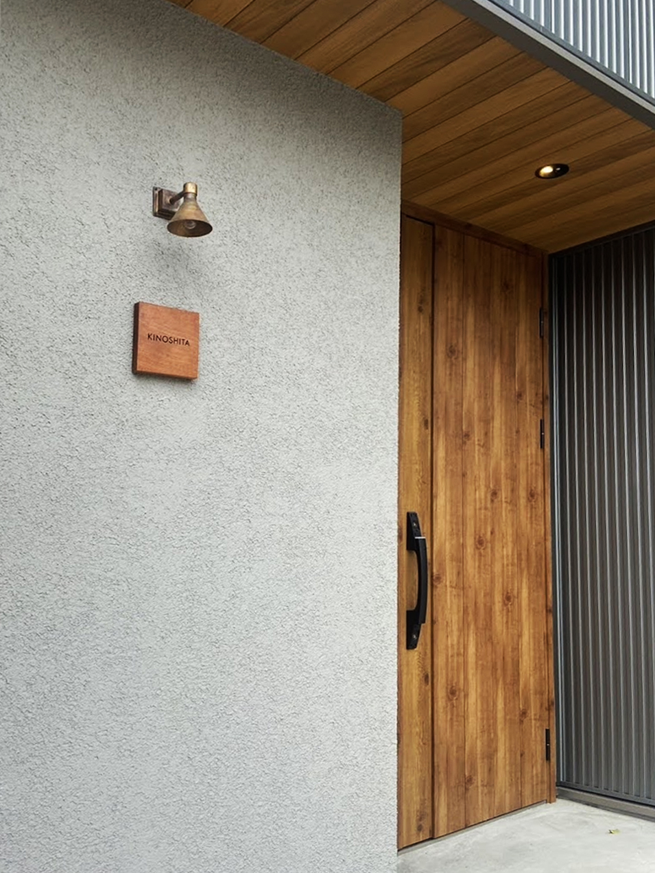 玄関ドアや軒天と色味の合う表札でとても素敵に仕上げていただきました。