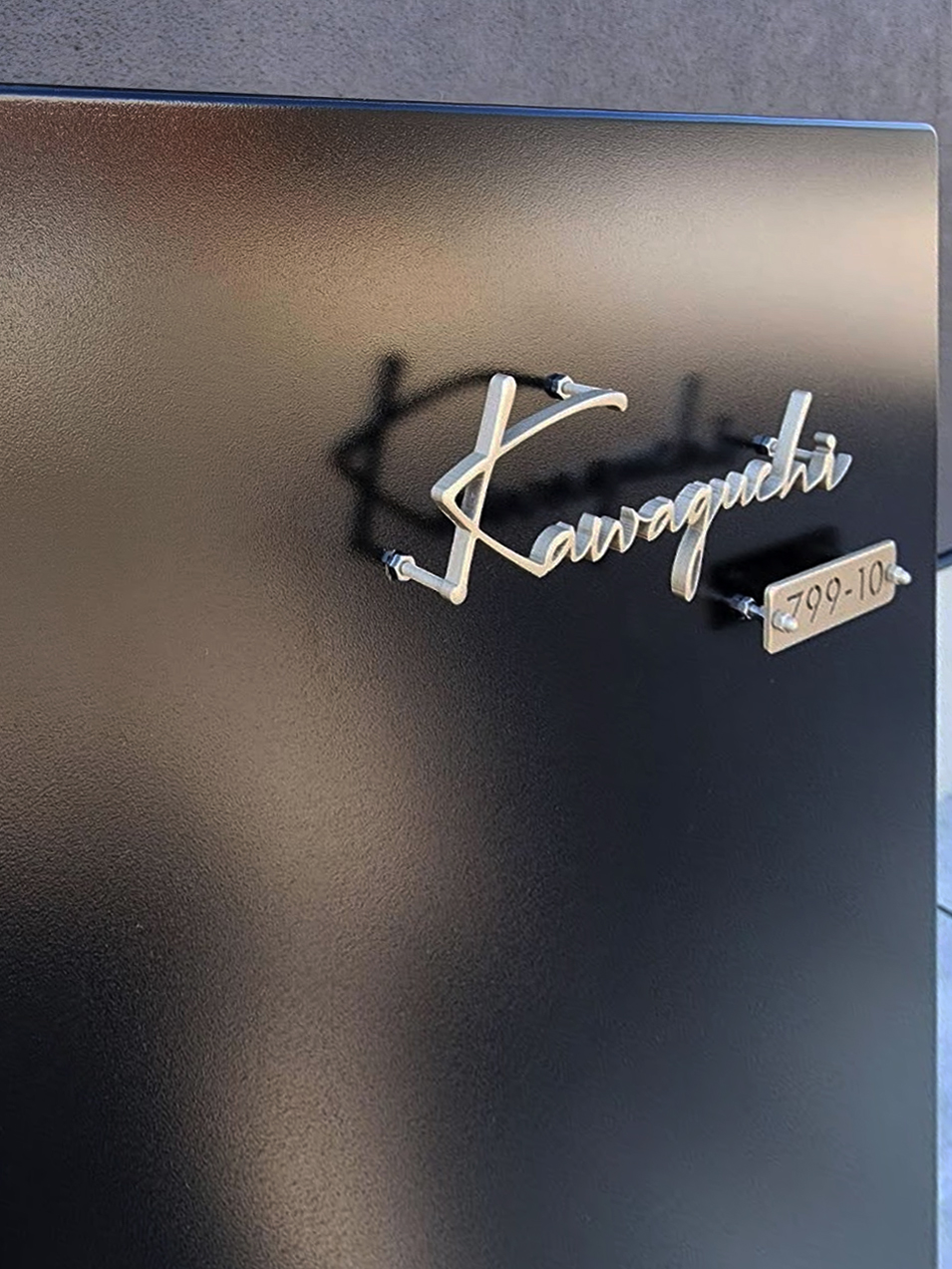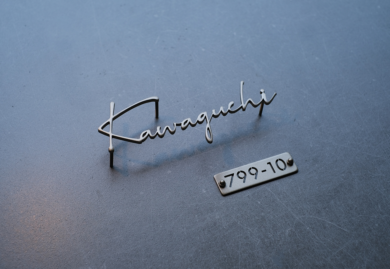 機能門柱用のステンレス切り文字表札と番地プレート