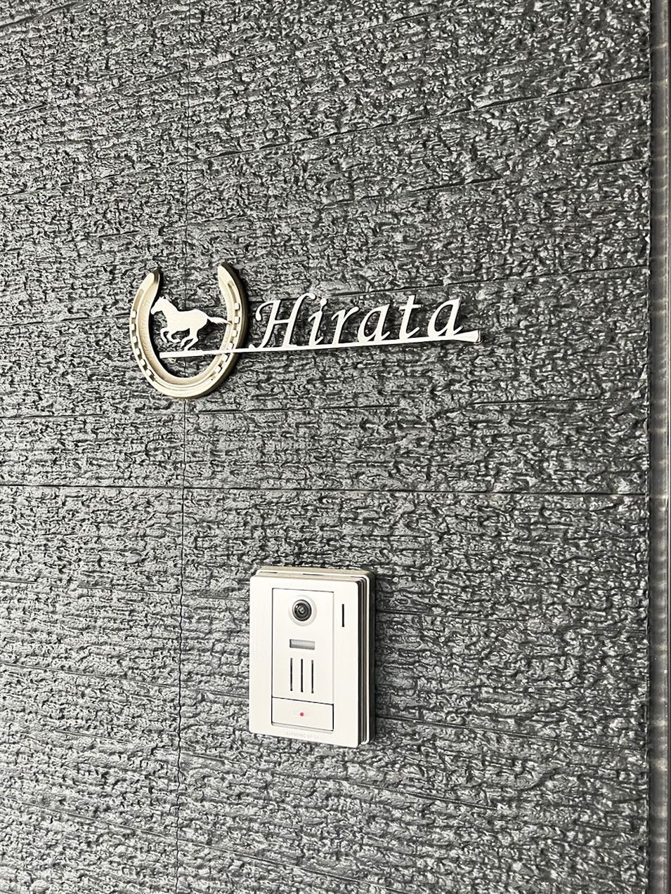 鞭のアンダーライン、表札と走る馬のシルエットをデザインしました
