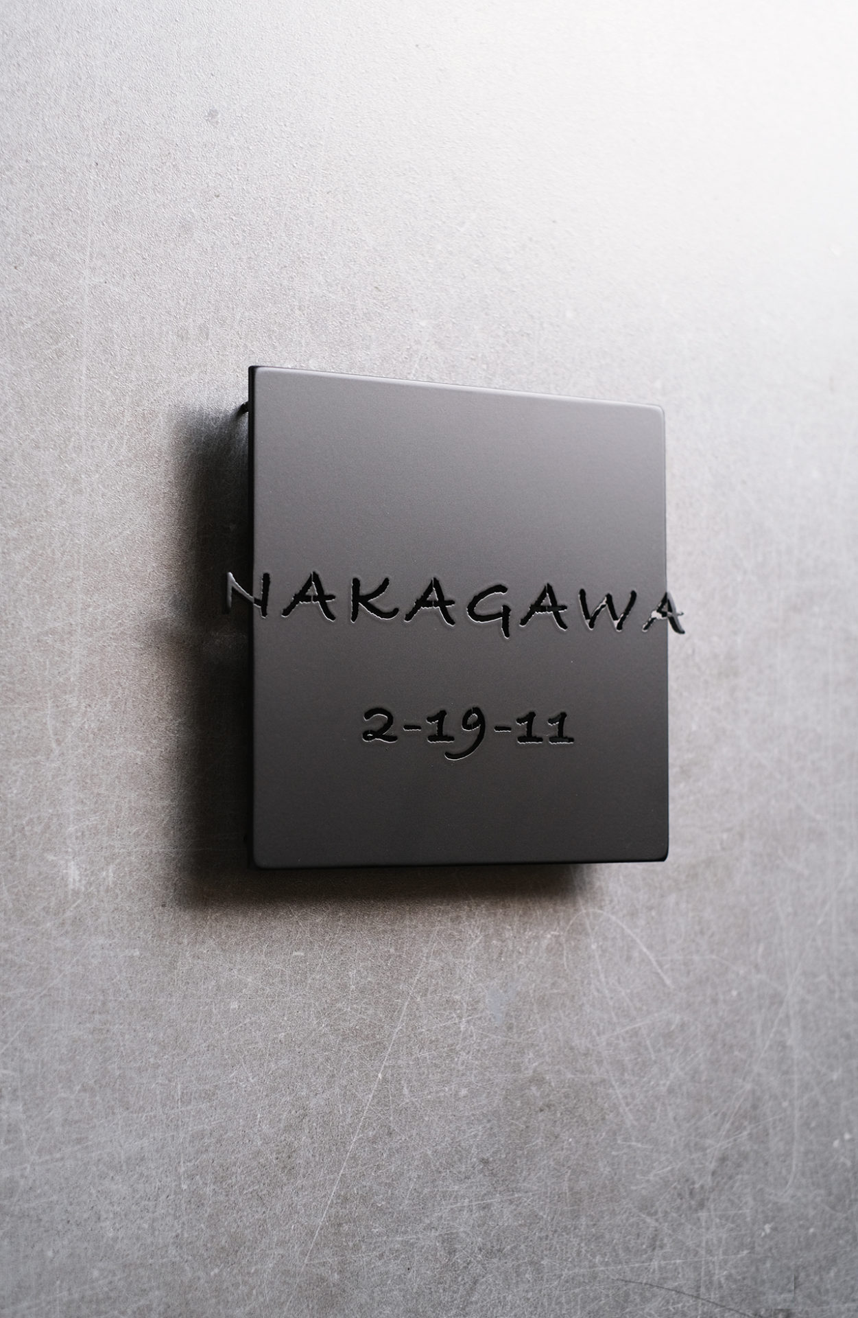 ステンレス切り抜きのマットブラック創作表札
