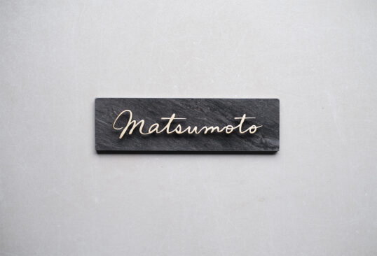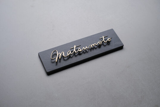 ブラックタイルに真鍮切り文字の表札