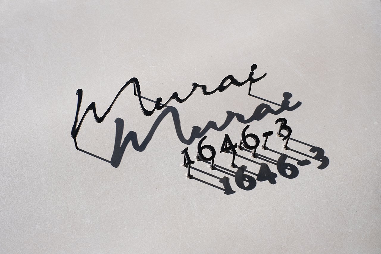 マットブラックのステンレス切り文字表札とハウスナンバー