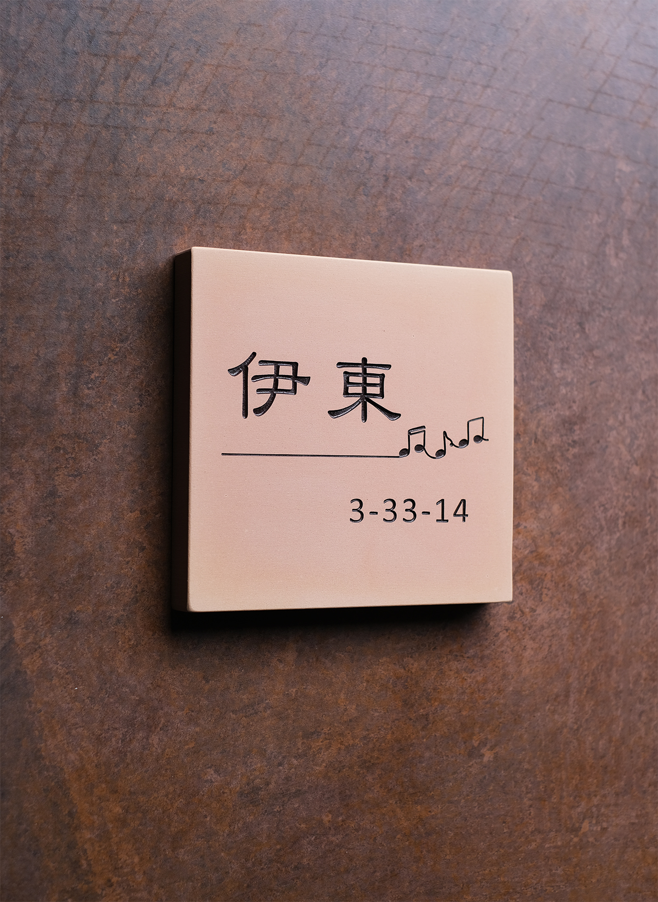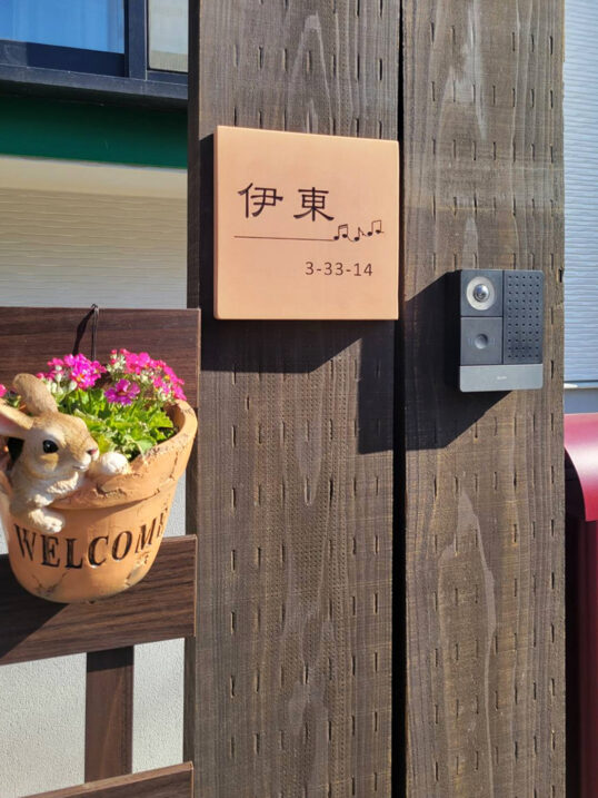 ぬくもりのある肌理の細かなテラコッタタイルの表札