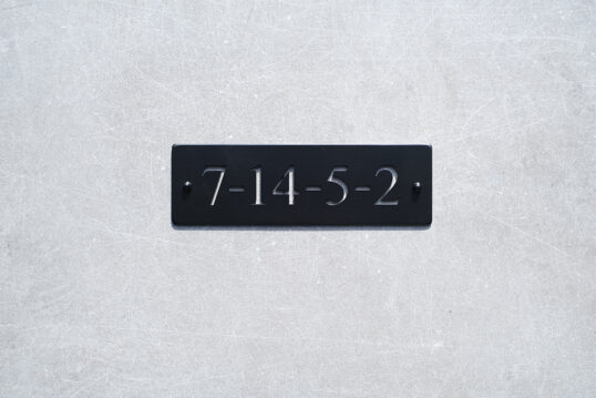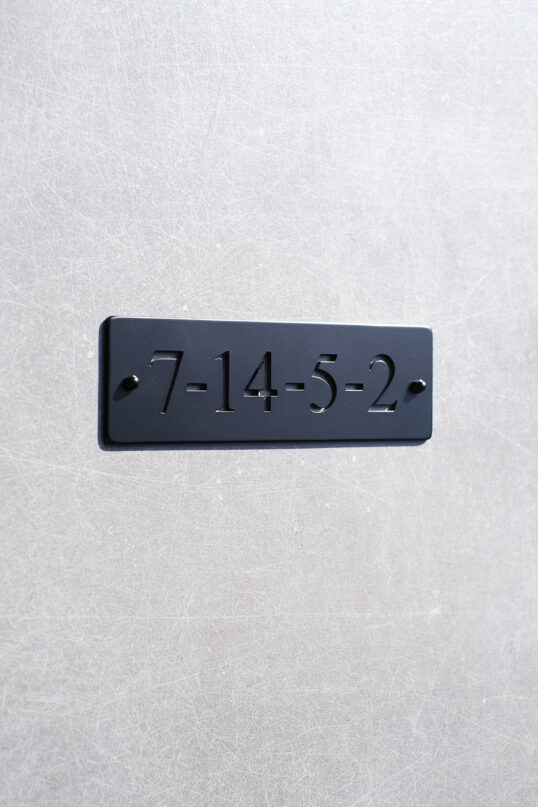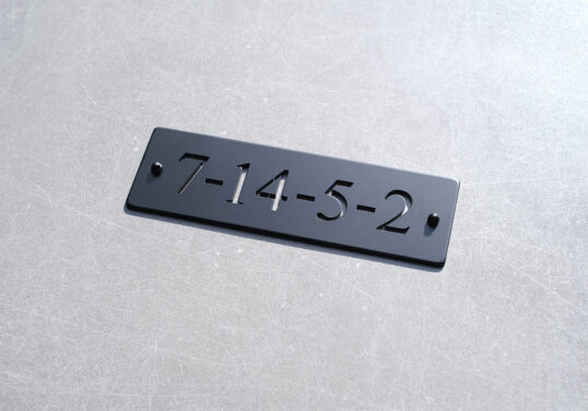 門柱のメーカーでは切り抜き文字で番地の数字のみの表札は作れず、既存のビス穴もあるためオーダーで作れる所を探しました。