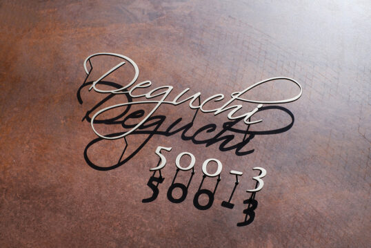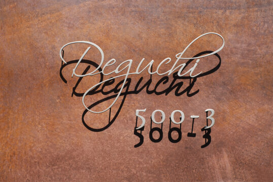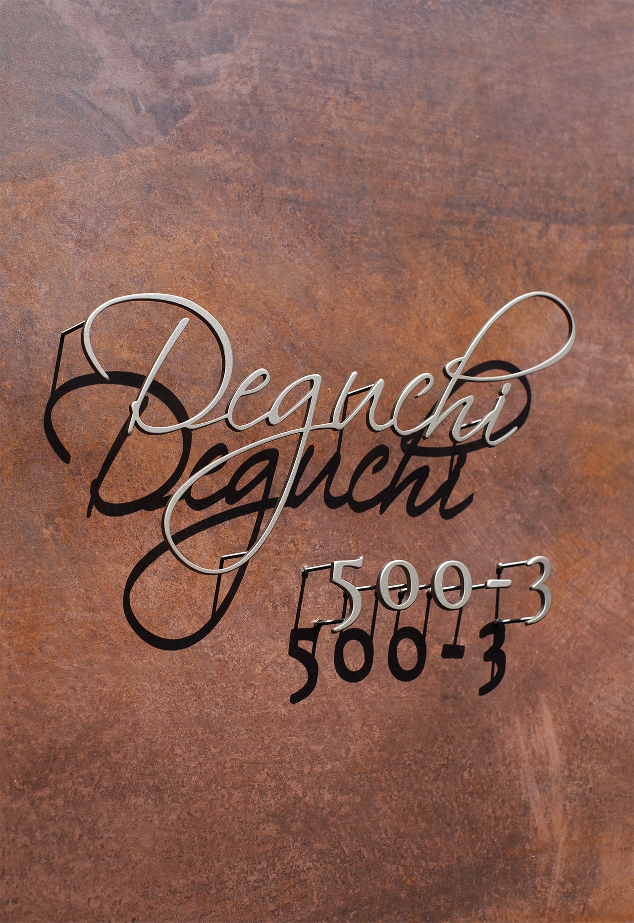 マットゴールドのステンレス切り文字表札とハウスナンバー
