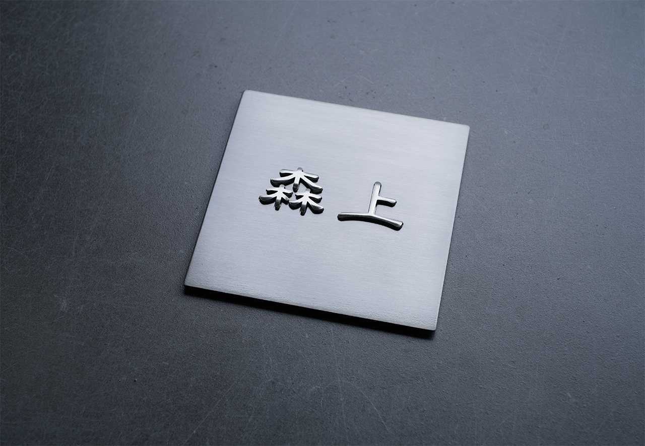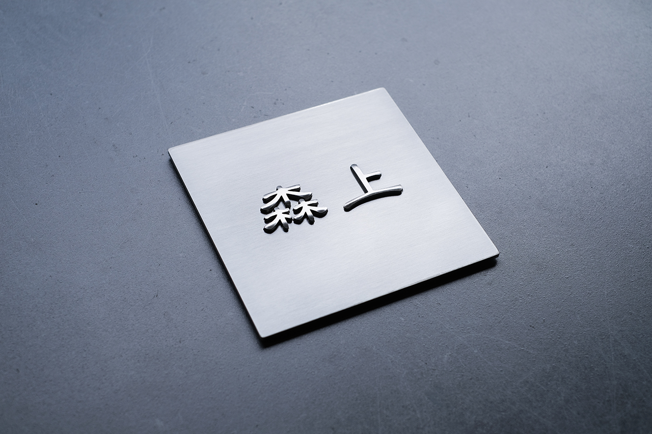 ベースは横に漢字は縦のヘアーライン研磨仕上げすることによって見る角度によって表情が変わります