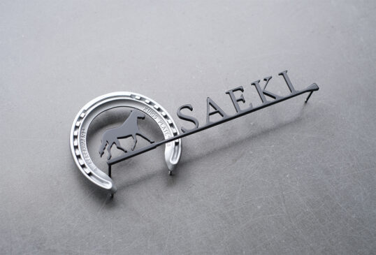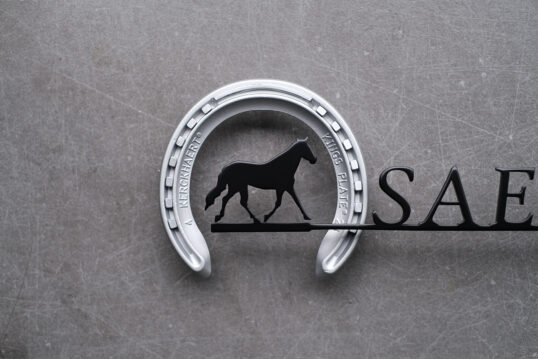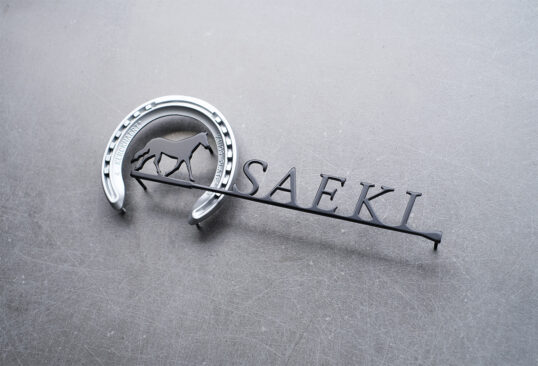 競走馬の本物の蹄鉄を使って製作した創作表札