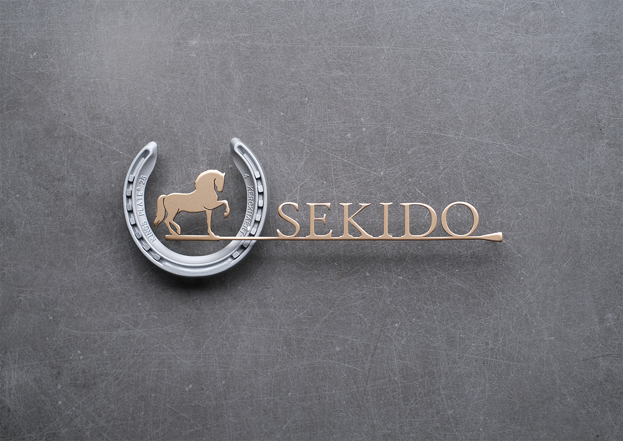 鞭のアンダーライン、馬のシルエットをデザインしました