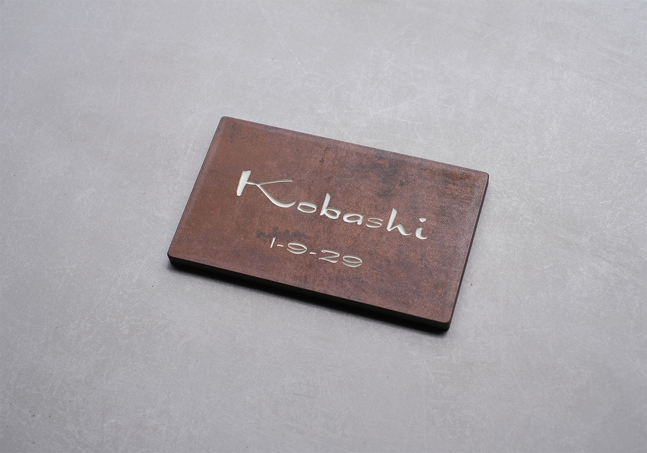 鉄サビ風タイル表札 2026/3/31 火曜日 by miyasu 鉄サビ風タイル表札 彫刻サンドブラスト鉄サビ風タイルアイボリー オーダーサイズの鉄サビ風タイル表札 外構の図面を拝見してご提案しました 170x100mm 鉄サビの風合いをモチーフにしたタイルに深く彫刻、着色(アイボリー)しています 木の門柱に取り付けられます LINEで打ち合わせ 東京に送ります kobashi お問い合せ用URL : このページで紹介した作品についてのお問い合わせは、上記URLをコピーして 『お問い合せ』のぺージの記入欄に上記「お問い合せ用URL」を貼り付けてご連絡ください。 ご質問、見積依頼、ご注文についても『お問い合せ』のページからヒロノクラフト公式LINE及びメールでお願いします。 ※ご利用いただく端末によっては、コメント送信後にエラー表示されるなどのうまく反映されない場合がございます。 その場合はLINEにて、ご連絡ください。