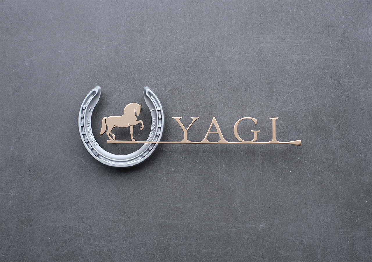 鞭のアンダーライン、馬のシルエットをデザインしました