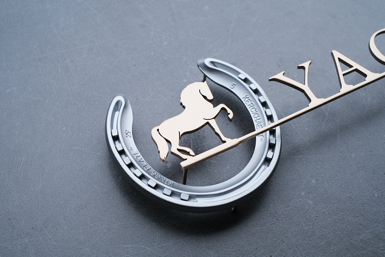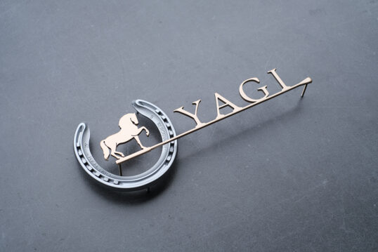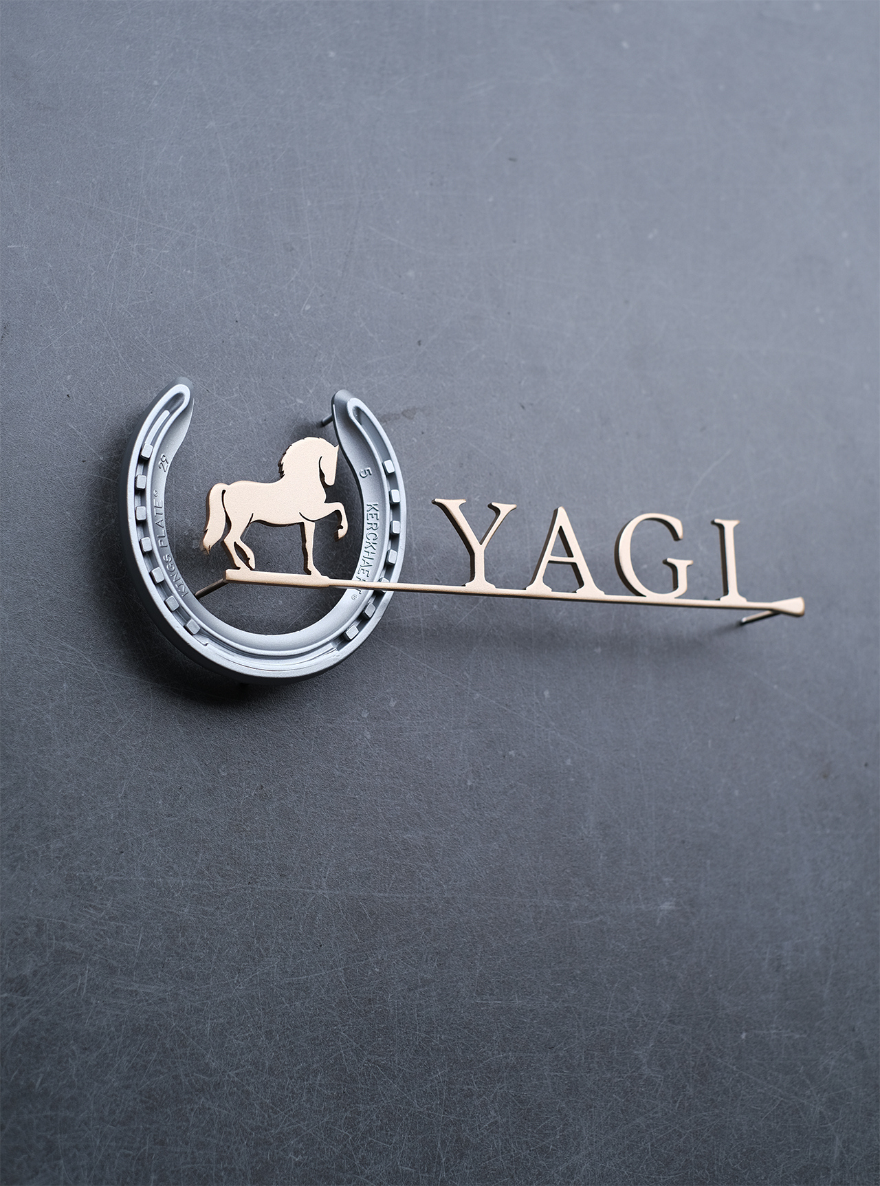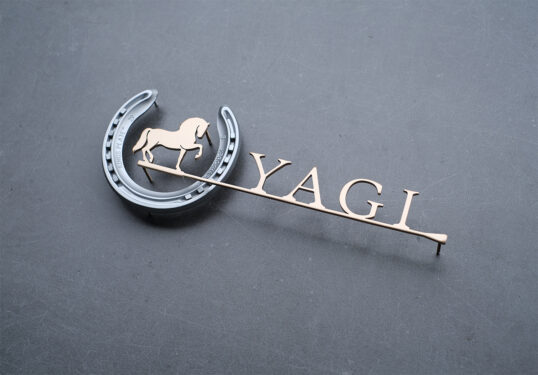 本物の蹄鉄を使ったステンレス切り文字表札